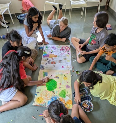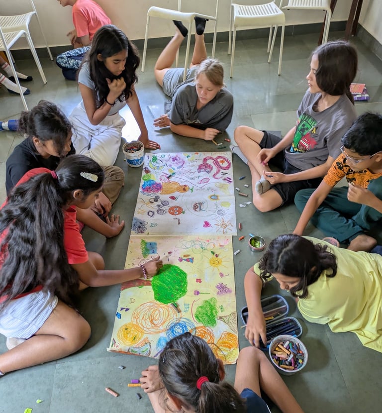 Our offerings for educational institutions are designed to bring emotional learning and creative expression into the heart of education. Through arts-based methodologies, we create spaces where students and teachers can explore, reflect, and grow together. From year-long wellbeing programmes to immersive intensives and one-day workshops, each offering is tailored to the developmental needs of learners. These sessions use expressive arts, circle time, and process work to nurture emotional awareness, creativity, and connection within the school community.